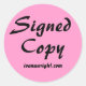 Author Signed Copy with URL Pink and Black Classic Round Sticker