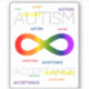 "Autism Acceptance" design with the rainbow infinity symbol.