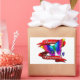 Original drawing by Sandra Gale of a butterfly made of puzzle pieces and coloured in rainbow shades, surrounded by a red banner. This is a great design for Autism Awareness, especially for the month of April, which is Autism Awareness month.