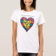 This women's white t-shirt features a meaningful Autism Awareness design. At the top, the phrase "Autism Awareness" is displayed in a bold and clear font. The central graphic is a heart made up of colourful puzzle pieces, symbolising the diversity and uniqueness of individuals on the autism spectrum. Inside the heart, the words "Different Not Less" are prominently featured, emphasizing acceptance, inclusion, and the value of neurodiverse individuals. The combination of bright colours and a heartfelt message makes this t-shirt both visually appealing and a strong statement of support for autism advocacy.