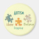 "Hope, Inspire, Believe." A simple message for all those who's lives are touched by austim. Designed with a more modern appeal, three puzzle pieces are the centre focus of this artistic design. Customise to your needs. Original design by Rebecca of Night Owl's Menagerie, 2010.