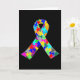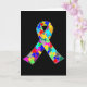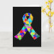 Beautiful autism ribbon filled with puzzle pieces of every colour on a black background to support your loved one who falls on the autism spectrum. I love my autistic brother.