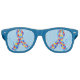Autism Awareness Sunglasses in blue featuring the autistic ribbon of puzzle pieces. Cool autism society party glasses for an Asperger Syndrome group or social class.