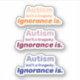 Autism isn't a tragedy, ignorance is. A quote to counteract all the autism negativity and fear of autism spectrum disorder that is in the world. Three stickers with different colours.
