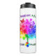 Beautiful spectrum tree with autism puzzles, butterflies, and hearts with the message of “Love Support Advocate” to support Autism Awareness.