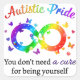 Colourful infinity symbol for Autistic Pride and the message of “You don't need a cure for being yourself” with beautiful butterflies, hearts, and flowers. It's a great gift to celebrate Autistic Pride Day on June 18th each year.