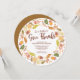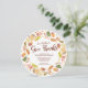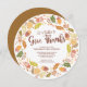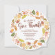 Thanksgiving dinner Invitation featuring a beautiful autumn leaf wreath with "let's gather to give thanks" in a hand lettered font die cut round shape. Flip our Thanksgiving Invitation over to view a coordinating back for an extra special touch.