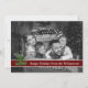 A modern photo Christmas card design with your family photo filling the card face and automatically converted to black and white. Fun modern art Christmas tree decor with dark red text band for your words.