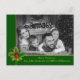 Personalise the front and back of this fun photo Christmas postcard. A modern clean photo Christmas card design with your family photo auto-converted to striking black and white filling the card face behind a Christmas green and gold frame highlighted with a pine and holly bough. Bottom band holds your names and Christmas greeting in a soft green font. You can personalise the backside holiday greeting, your return address and your names in script near the bottom with space for you to add a handwritten personal note.