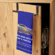 A glorious and luxurious kitchen towel for an auto body shop and painting business reception area. The logo is a sports car with an incredible paint job on a rich, royal blue metallic-look background. Customise with your details and give a strap line, quote or personal message to give a professional feel and really sell your service. These also make great promotional giveaways to help market your business