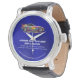 A stunning watch design for an auto body shop and painting business. The logo is a sports car with an incredible paint job on a rich, royal blue metallic-look background. Customise with your details and give a strap line, quote or personal message to give a professional feel and really sell your service.