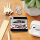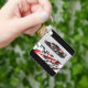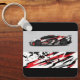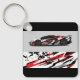 This keychain is shown in a black colour with a auto race car print design.
