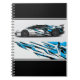 Notebook is shown with a photo print of a auto race car.