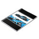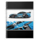Notebook is shown with a photo print of a auto race car.