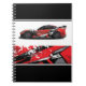 Notebook is shown with a photo print of a auto race car.