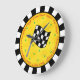 Auto Race Fan Chequered Flag Black Yellow Custom Large Clock