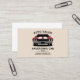 A business card for auto sales features a vintage red car with white stripes down the middle on a beige background and a separator with two stars. It might be suitable for activities such as car driver, taxi, transport, auto repair, car wash, etc.