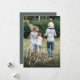 Send holiday greetings to friends and family in chic style with our elegant photo cards. Design features your favourite vertical or portrait orientated photo with "Merry Christmas" overlaid along the bottom in white hand lettered script. Personalise with your family name and the year in the lower right corner, and add three additional photos to the back, along with a personal message.