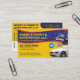 Customise this yellow, red and blue auto repair double sided (2 sides) eyecatching business card template design to suit your needs and auto repair business. This car mechanic template displays vehicle, wrenches and other mechanic's tools. Choose from various card stock options. For a more sophisticated look, you may even select glossy finish option if desired.