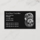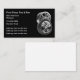 Tire and rim automotive business cards designed in an editable template with graphic of a chrome tire rim and car tire graphics in the background.
