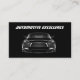 Customise this cool automotive custom business card design and make your best first impression with customers. Designed with a classy upscale car in the background on high quality glossy business card stock in a double side design that includes two side printing. This business card works for car detailing, auto body and collision shop, an care care centre, or automotive mechanic.