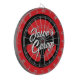 Automotive dartboard with car steering wheel print. Red and black or custom colours. Personalise with custom name or text. Cool gifts for men; dad, uncle, brother, son, driver, mechanic etc. Manly design for garage, auto repair shop, club, pub, cafe, man cave, workspace, office, playroom etc.