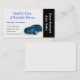 Photo of a new car on a crisp white background. The right side has a black text area for your business name with sideways text for a professional, modern and unique look. Great business card for new and used car dealers, car detailers, auto body paint shops, automotive repair shops, and mechanics. This design comes with many different stylish cars in it and a few different sidebar colours.