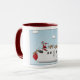 Santa and his exhausted reindeer find a relaxing alternative mode of transport on this decorative Christmas mug by Thingsesque.