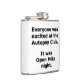 The flask itself is fine. It’s a cheap flask, obviously bought in bulk, however am prepared to overlook that. Given that it is a personalized item, I would have liked to have seen gift boxing instead of the generic packaging. Terrible printing, and/or quality. It’s a cheap, tacky vinyl. It is not cut straight and is also applied in a way that it is overhanging the bottom, causing the glue to catch on items and it will eventually roll and tear, damaging the wrap.