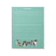 This lined writing paper or stationery is ready to be personalised with your name or other text at the top and features realistic style illustrations of Australian Shepherd or Aussies against a mint green background.