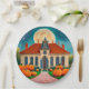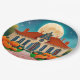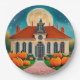 Autum/Fall Moon Paper Plates the colours are cream, blue, orange, brown.