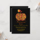 A dramatic, seasonal invitation featuring an apple made of falling leaves against a black background. Suitable for any fall season celebration.