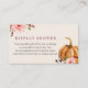 Baby Shower request card for unwrapped gifts for a display shower. Featuring pumpkin and floral illustrations with request poem "Your beautiful gift will be put on display so no need to wrap in any way. an unwrapped present is just as sweet, and will save more time to mingle and eat."