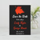 This elegant fall wedding save the date invitation is perfect for a modern autumn wedding. The simple design features red fall leaves with elegant white and red typography on a black background.