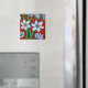 Stylish, elegant white floral design on yellow gold background painting motif by Lisa Lorenz on a magnet