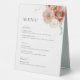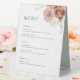 This Autumn Bohemian Wedding Tent Menu Sign from the Emilia Collection features hand-drawn florals in fall shades of burgundy, pink, and gold. Personalise it with your details easily and quickly. Simply press the 'customise it' button to further re-arrange and format the style and placement of the text.