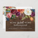 Affordable custom printed moving announcement postcards personalised with your family's new address and contact info. This trendy design features a boho watercolor floral border in warm rustic fall colours on a faux wood background. Use the design tools to customise the text, edit the fonts and colours or add your own photos to create a one of a kind new address postcard for your family or business.