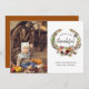 Custom printed Thanksgiving photo card personalised with your custom greeting and photos. The design features a boho watercolor floral wreath around the "Blessed and Thankful" quote. Add your photo and use the design tools to choose any background colour, or edit the text fonts and colours to create a unique fall greeting card for family and friends.
