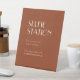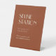 This Autumn Boho Deco | Rust wedding selfie station pedestal sign creates a simple and versatile rustic desert or country western theme for your marriage celebration. With the burnt orange, terracotta, rust, copper colour scheme, combined with the plain beige minimalist design, allows for classic mix and match with the other colours in this fall collection to create your own unique colour scheme.