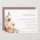 An autumn boho floral bridal shower invitation. This bridal shower invitation features an elegant fall floral arrangement. Rusty orange, terracotta, deep purple and neutral earth tones are features throughout the design. The perfect invitation for a fall wedding shower.