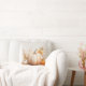 A watercolor style arrangement of a large orange pumpkin and a small white pumpkin. Surrounding the pumpkins are leaves, dried flowers, and twigs, evoking the essence of autumn with a minimalistic and elegant touch.