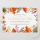 Our charming and modern Thanksgiving dinner invitation beckons friends to celebrate with you in style. Design features a border of painted watercolor autumn leaves, buds and branches, with your Thanksgiving dinner details in the centre. "Eat, drink and be thankful" appears across the top in curved lettering. Gold foil accent lettering adds luxe appeal to this beautiful invitation.