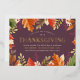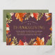 Our charming and modern Thanksgiving dinner invitation beckons friends to celebrate with you in style. Design features a border of painted watercolor autumn leaves, buds and branches, with your Thanksgiving dinner details in the centre. "Eat, drink and be thankful" appears across the top in curved lettering. Gold foil accent lettering adds luxe appeal to this beautiful invitation.