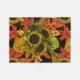 Hand drawn bouquet of sunflowers, autumn leaves blueberries and blackberries and beetles