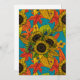 Hand drawn bouquet of sunflowers, autumn leaves blueberries and blackberries and beetles