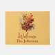 The perfect welcome mat for fall, this design features an autumn bouquet with "Welcome" written underneath in beautiful deep red font. Underneath is a template for inserting your name. Order yours today!