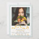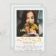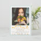 A misty grey-green background is layered with a white, torn-edge panel that is embellished with small golden leaves and has a large, photo window. Suitable for either gender and any age. The card is easy to customise with your wording, font, font colour, paper shape options and choice of six paper types.