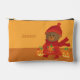 Cute orange and brown pencil pouch for kids with a sweet brown bear picking up a pumpkin . Personalise it with the child's name .