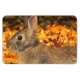 Gorgeous nature photo of an adorable wild rabbit in vibrant orange fall leaves on a sunny autumn day.