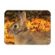 Gorgeous nature photo of an adorable wild rabbit in vibrant orange fall leaves on a sunny autumn day.